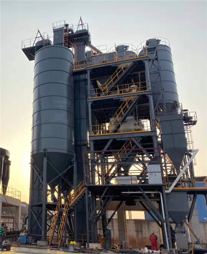 三、在配料方式上,該套設(shè)備摒棄傳統(tǒng)地面配料模式,采用塔式布局頂部配料模式,大幅減少物料配比輸送時(shí)間,提高生產(chǎn)效率,降低材料成本。