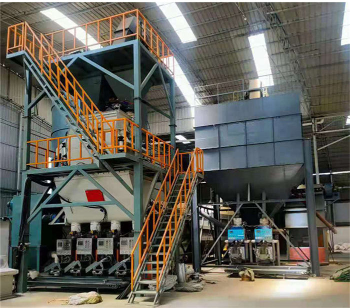 五、該套設(shè)備在常規(guī)自動(dòng)包裝機(jī)的基礎(chǔ)上,還配備有高效散裝裝車機(jī),該系統(tǒng)可對(duì)4米及以下槽罐車進(jìn)行自動(dòng)散裝作業(yè),滿足工地大批量散裝砂漿的使用需求。