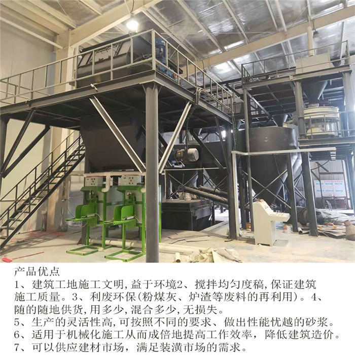 四、混合系統(tǒng)采用4立方大容量無重力雙軸高效混合機(jī),混合時(shí)間短,混合精度高,混合速率3-5分鐘一批。高效生產(chǎn)的同時(shí),確保成品砂漿實(shí)用效果無虞。